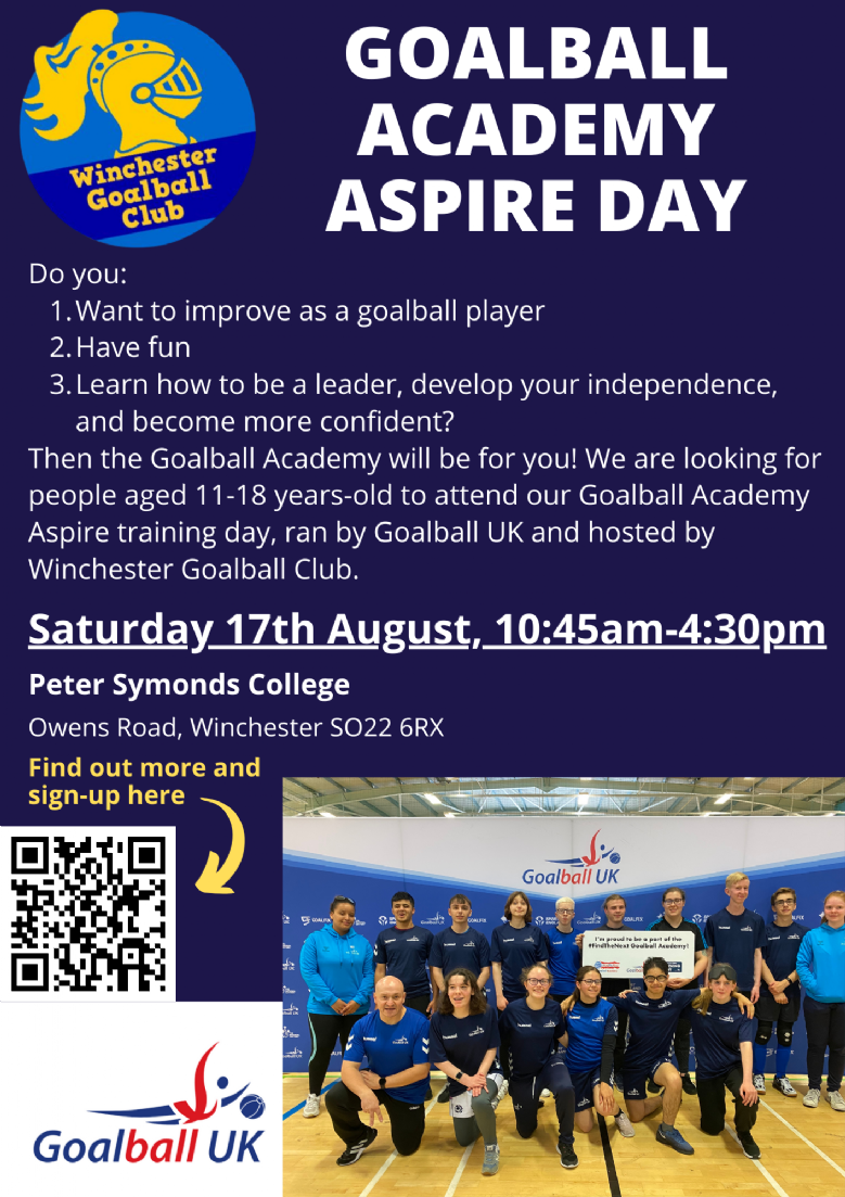 They are hosting UK's Goalball Academy Aspire Day at Peter Symonds College, Winchester on Saturday 17th August, 10.45am - 4.30pm for 11-18 year olds and VICTA have provided a travel offer